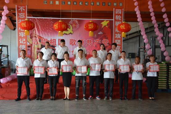 為慶祝建黨98周年和迎接建國70周年,二九一制米廠于7月9日,舉辦“歌唱祖國 歌頌黨”文藝匯演暨先優(yōu)表彰活動。活動由二九一制米廠黨支部全體黨員演唱《沒有共產(chǎn)黨就沒有新中國》拉開活動序幕,節(jié)目由各部門班組選送,在崗51名員工即是演員又是觀眾。制米廠人才濟(jì)濟(jì),人人參與,載歌載舞,精彩紛呈,落實(shí)“三帶三創(chuàng)”,師傅徒弟來宣誓。