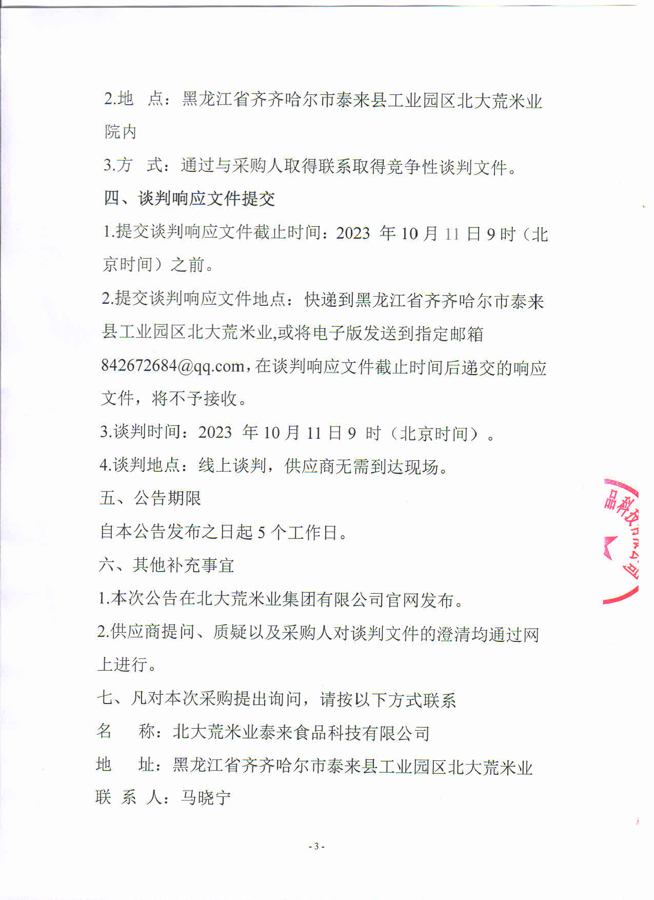 北大荒米業泰來食品科技有限公司鍋爐及配套設施改造項目競爭性談判公告