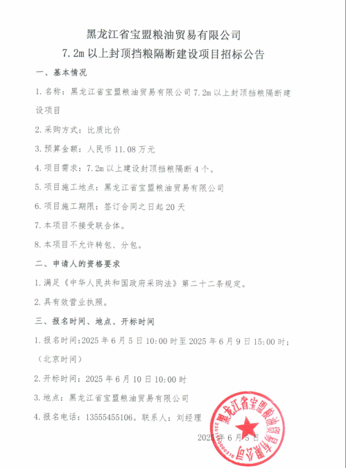 寶盟公司擋糧隔斷建設項目招標公告