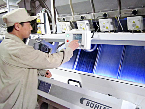 圖為友誼制米廠正在生產加工出口供貨的糙米。