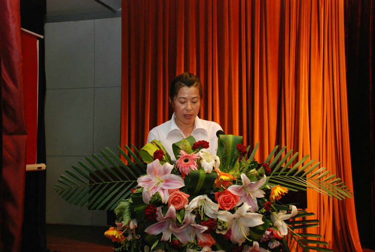 先進黨支部代表李桂英做會議發言