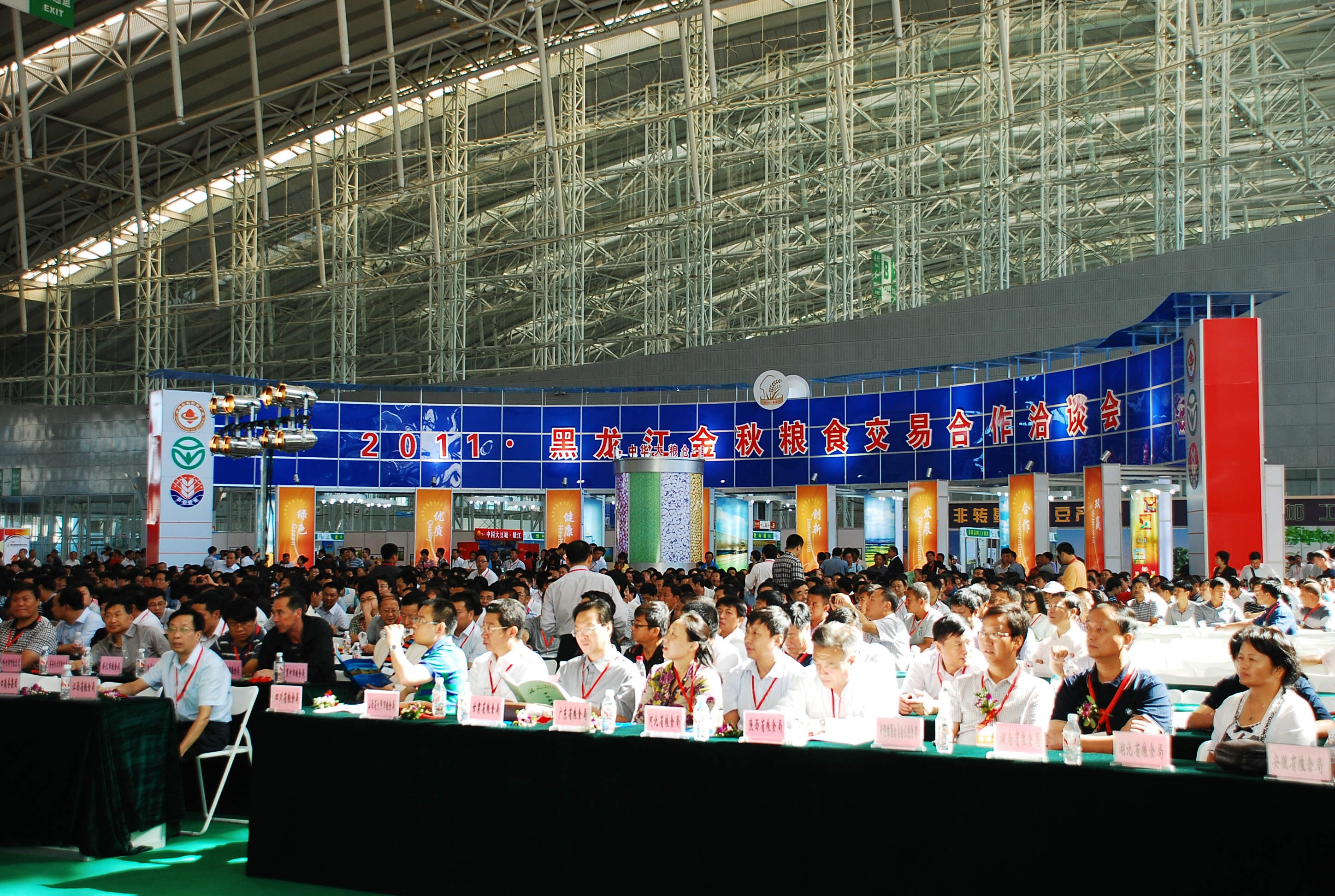 9月3日,2011年黑龍江省金秋糧食交易會在哈爾濱會展中心召開,圖為會議現場